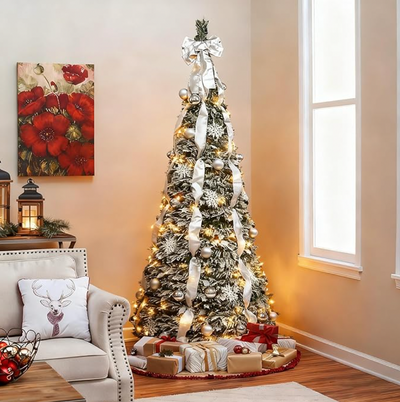 Albero di Natale Innevato Pieghevole – Senza Montaggio, Decorato e Pronto all’Uso 🎅
